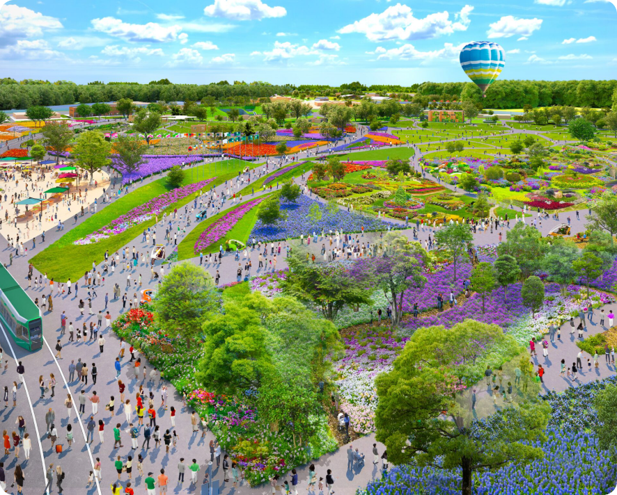 GREEN×EXPO 2027は、2027年に神奈川県横浜市(旧上瀬谷通信施設)で開催される国際園芸博覧会の略称です。「植物」、「花」、「緑」を総称し、「自然」、「環境にやさしい」という「GREEN」、国際的に共通する課題の解決に寄与する国際博覧会「EXPO」という語を掛け合わせ、これからの自然と人、社会の持続可能性を追求し、世界と共有する場であることを表現しました。日本では1990年の大阪花の万博依頼37年ぶりとなる最上位(A1クラス)での開催で、BIE(博覧会国際事務局)認定の万博でもあります。